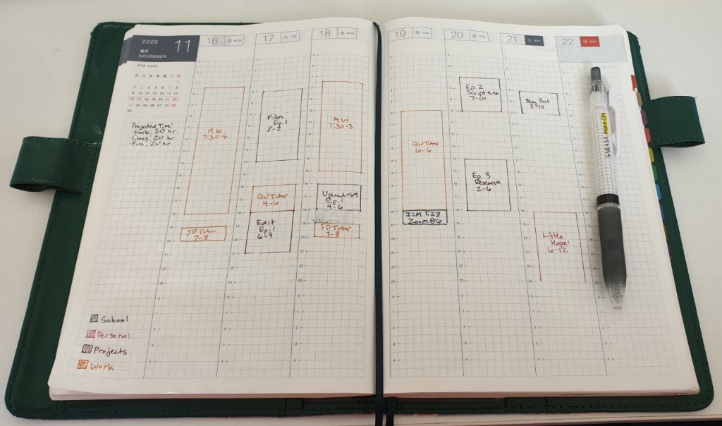 This week, of course, I continued on with my research in preparation for writing the script for episode two. This research centered on taking care to plan each minute of your day with regards to the processes you planned to reach your goals, living the life that you want to live (not the life that someone else lives or says you should live), and setting aside time for rest to avoid burnout and stress.
