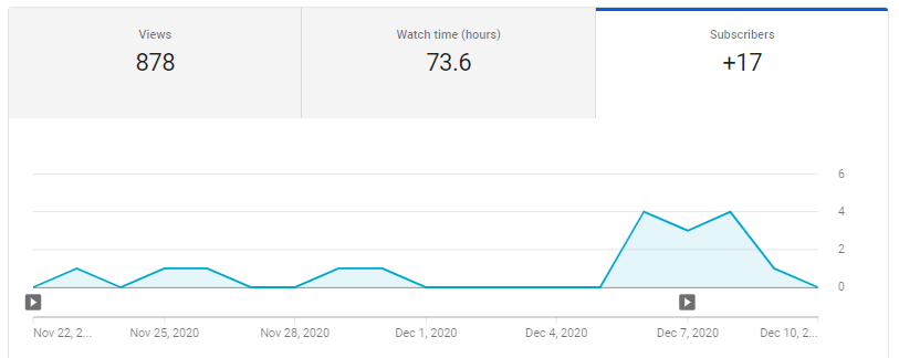 The final part (and the one that never ends) is taking not of the analytics and interacting with the community. While I was expecting some audience interaction, I was actually quite surprised about how much positive reception I have received. Even though the three videos (as of mid December 2020) have about 250 views total, there have been comments from 14 people, 35 likes, and 17 more subscribers. What I am happiest about, though, is the average view duration – keeping your audience engaged is the most difficult part of creating YouTube videos, and considering the past three videos are 8-12 minutes long 5 minutes is a great average.