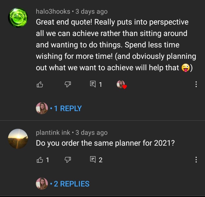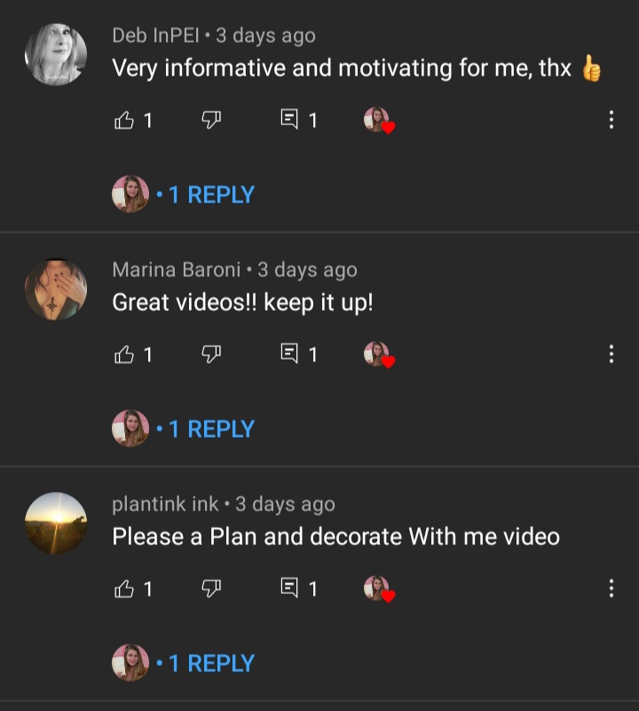 The support from the comments has made it apparent to me as to how little vanity metrics matter. Even though I don’t have many views, a substantial portion of my audience is reacting and engaging with my content. Each comment has been very supportive and has inspired me to consider putting more time into continuing my channel.